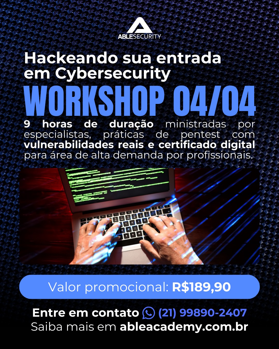 O workshop será conduzido por 3 instrutores especialistas da Able Security, consultoria com atuação desde 2010 em pentest, resposta a incidentes, forense digital, segurança ofensiva e defensiva.